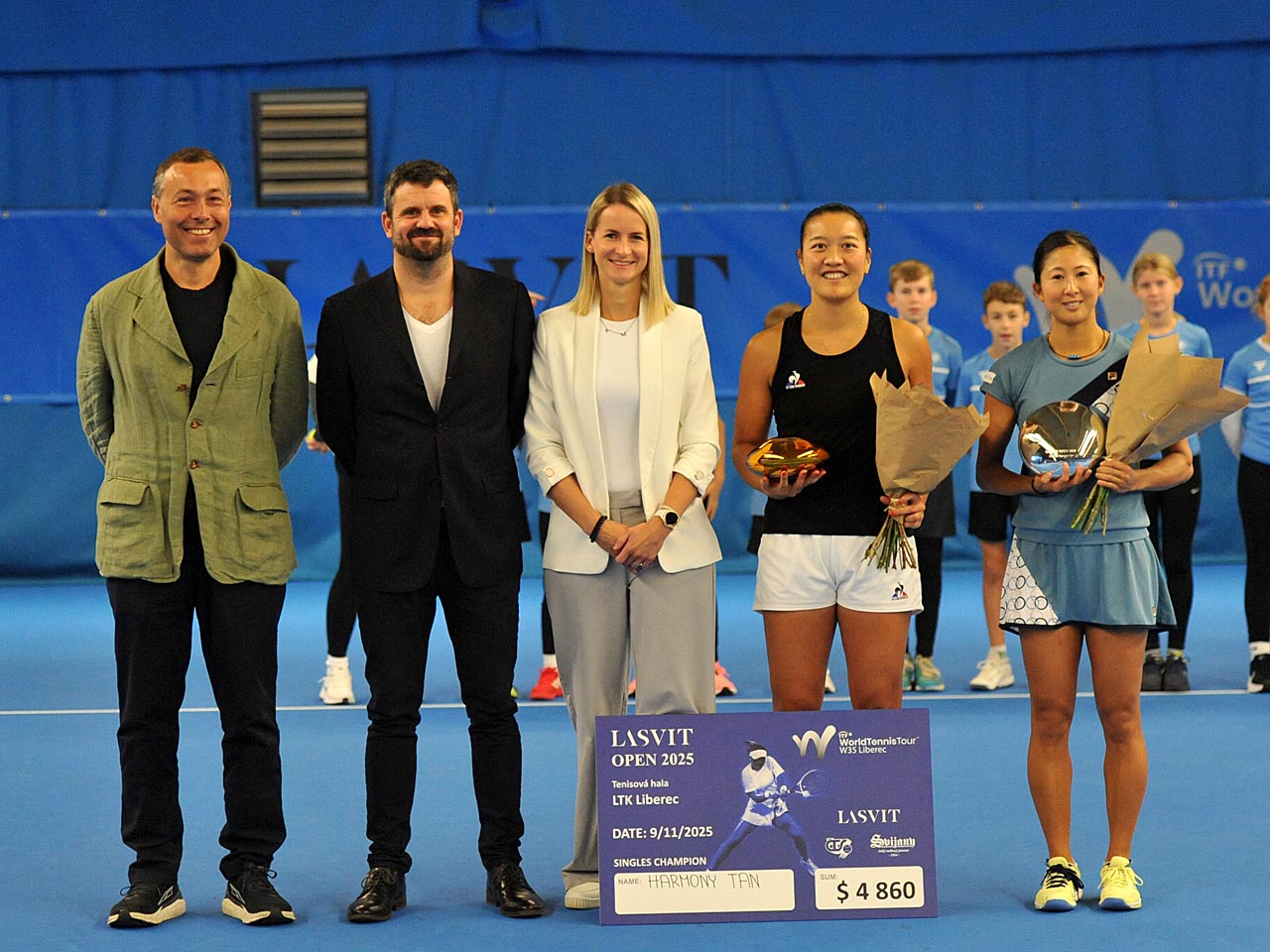 Nejlepší českou singlistkou v Liberci byla Suchá. Havlíčková vyhrála deblový turnaj Liberec hostil během tohoto týdne halový turnaj kategorie ITF W35 žen, během něhož se neztratily ani domácí tenistky. Amy Suchá se z kvalifikace probojovala až do premiérového semifinále, ve čtyřhře pak vybojovala turnajovou trofej Lucie Havlíčková. Singlovou šampionkou se stala druhá nasazená Harmony Tanová z Francie (na snímku).